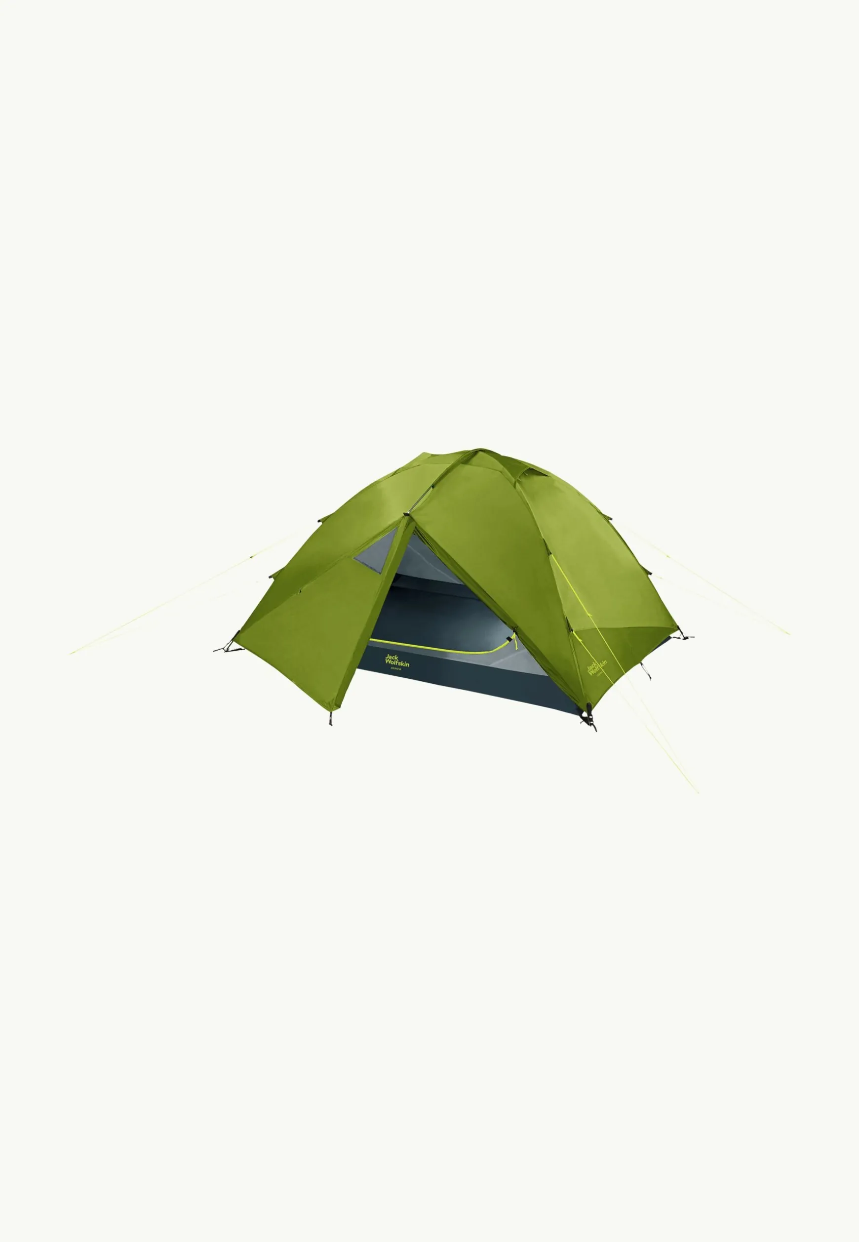 Für den Aufbau der freistehenden Konstruktion brauchst du nur wenige Heringe und Abspannleinen – optimal, wenn der Boden sehr hart ist. Im Sommer lässt sich das Innenzelt auch ohne Außenzelt verwenden.