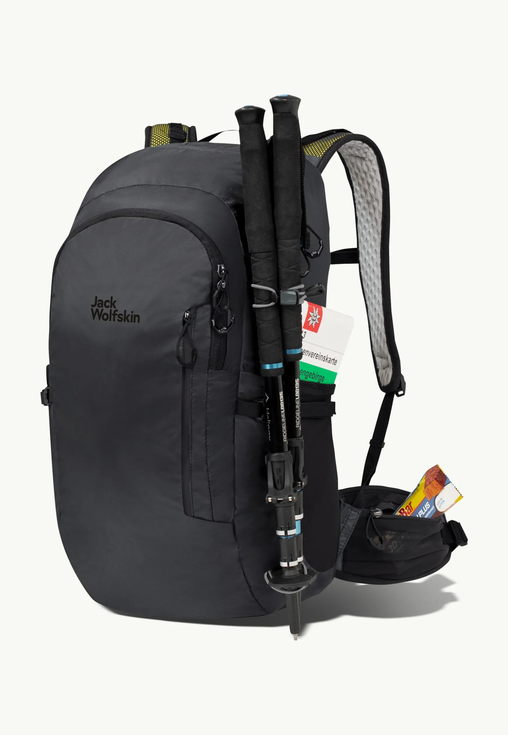 Für noch mehr Komfort sorgt der gepolsterte Hüftgurt mit elastischer Netztasche mit Reißverschluss.