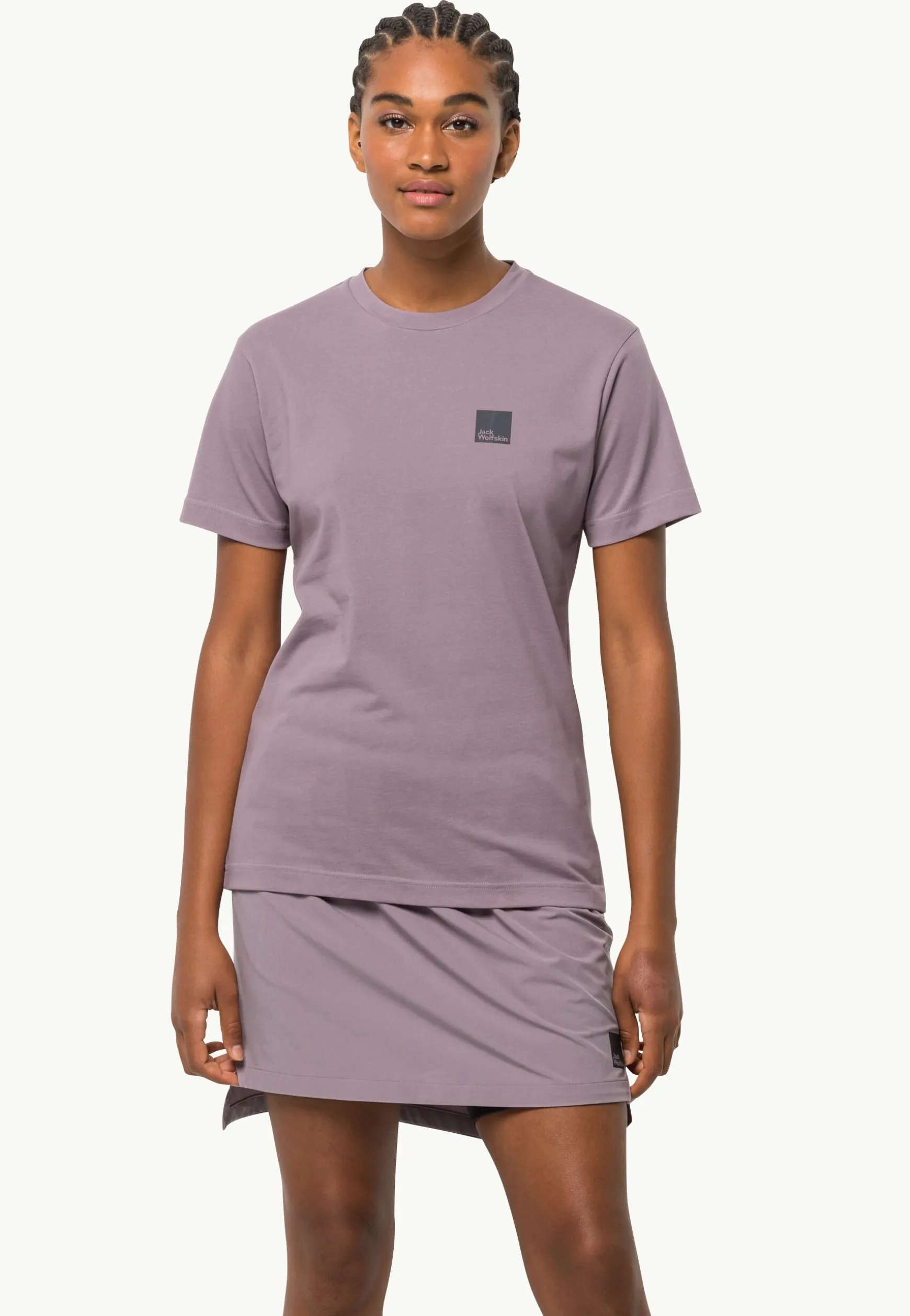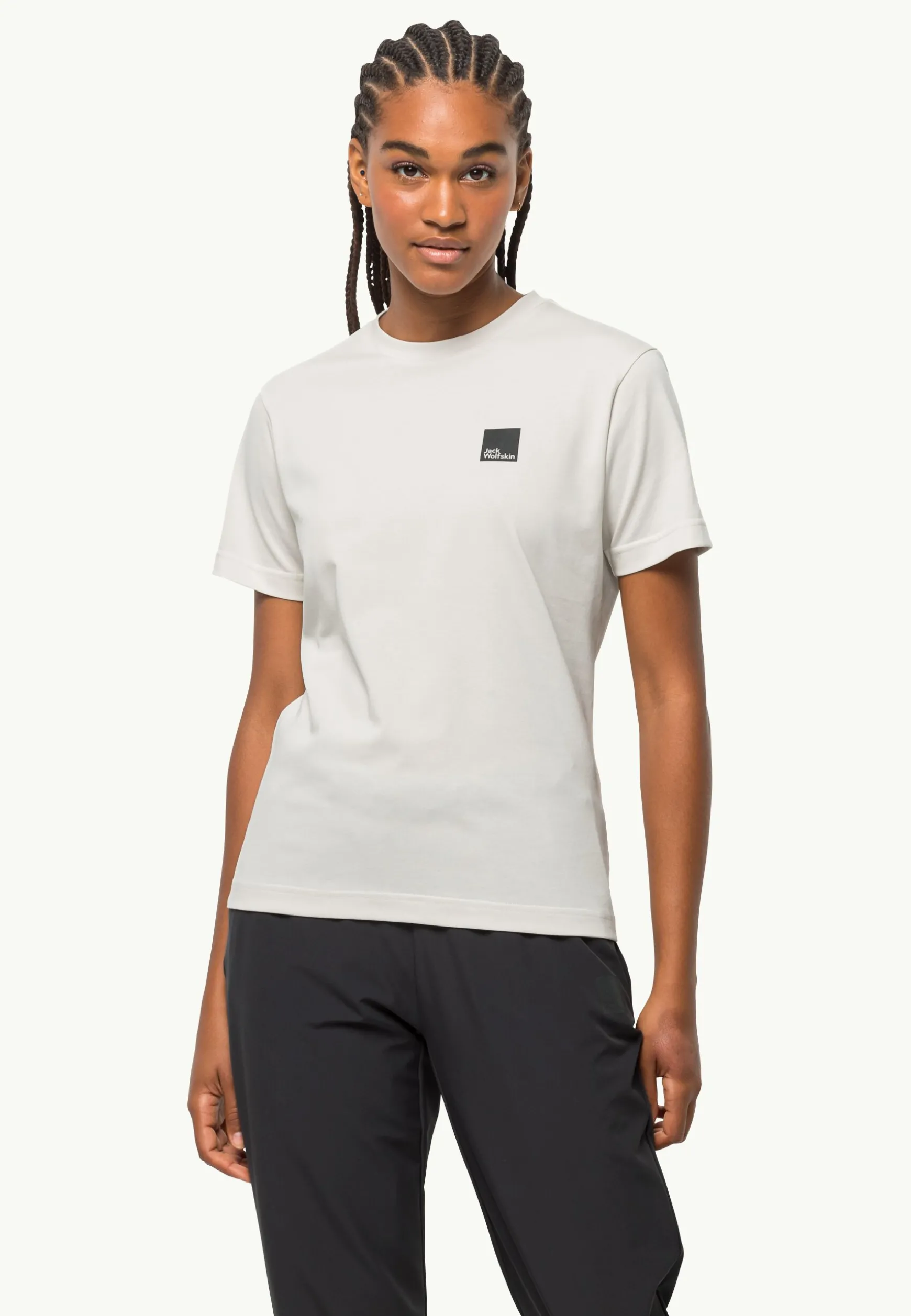 Der Stoff des T-Shirts setzt sich aus Bio-Baumwolle und recycelten Kunstfasern zusammen.