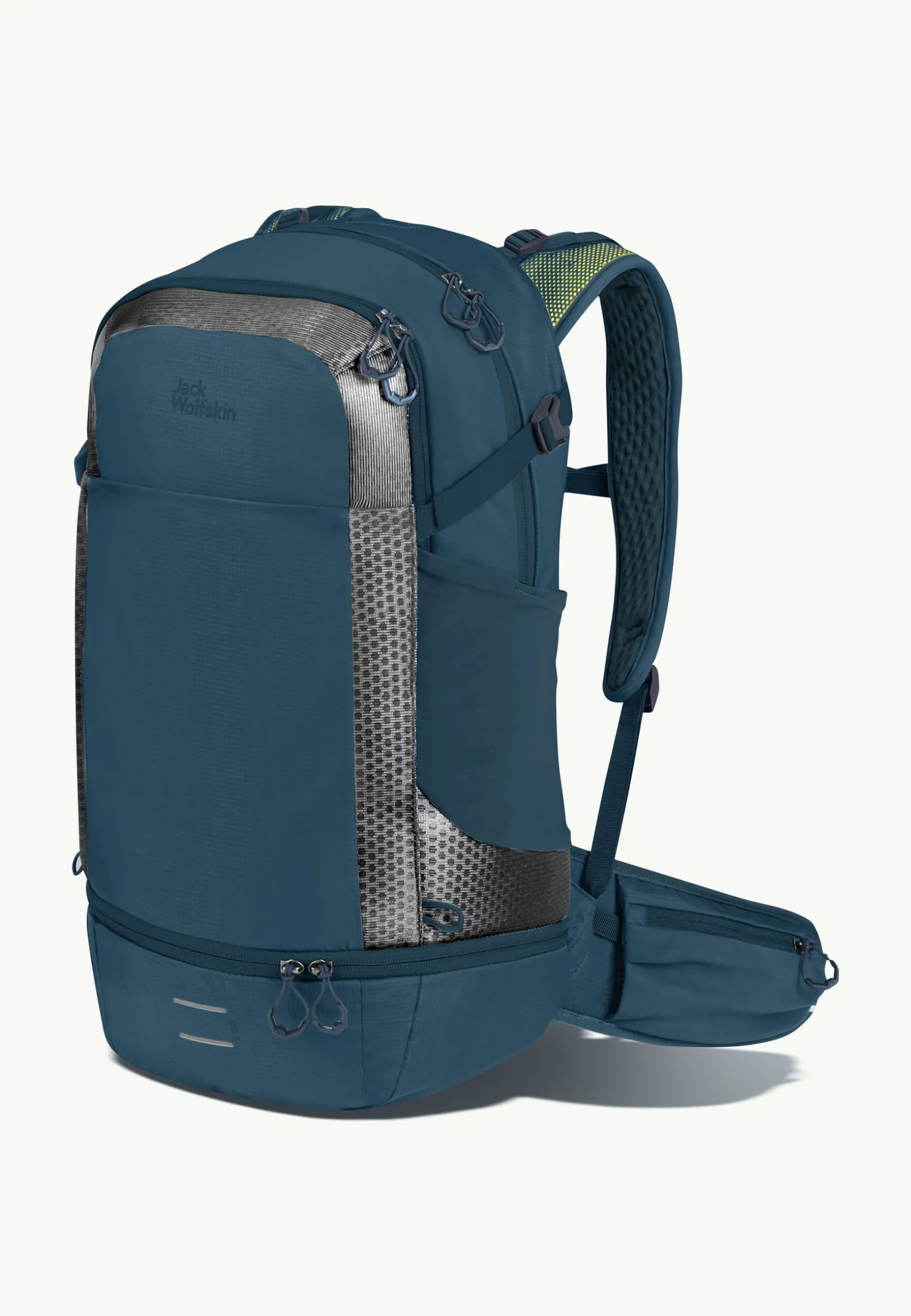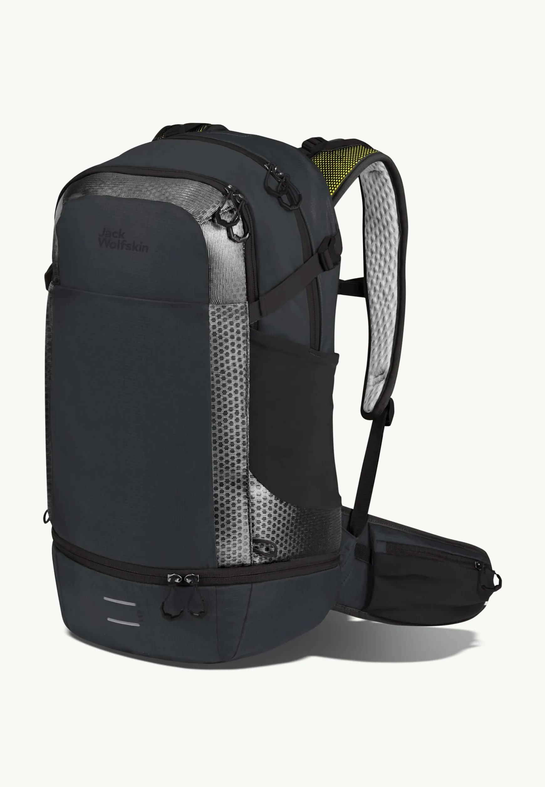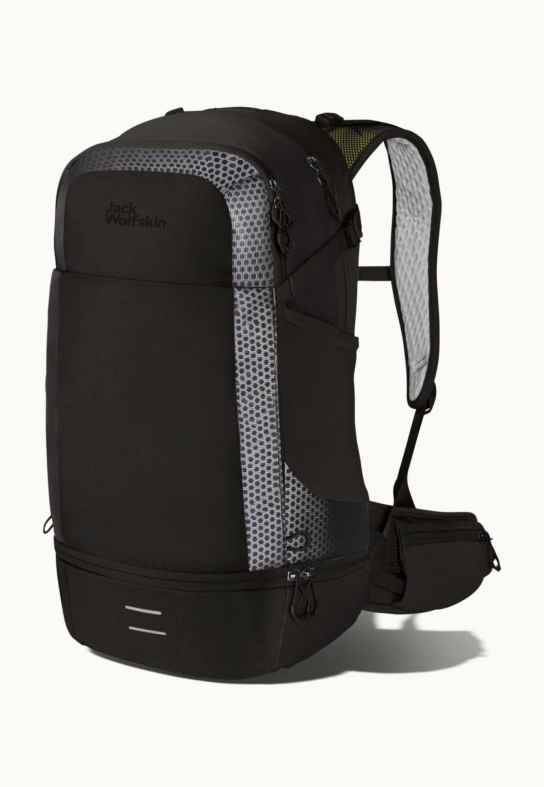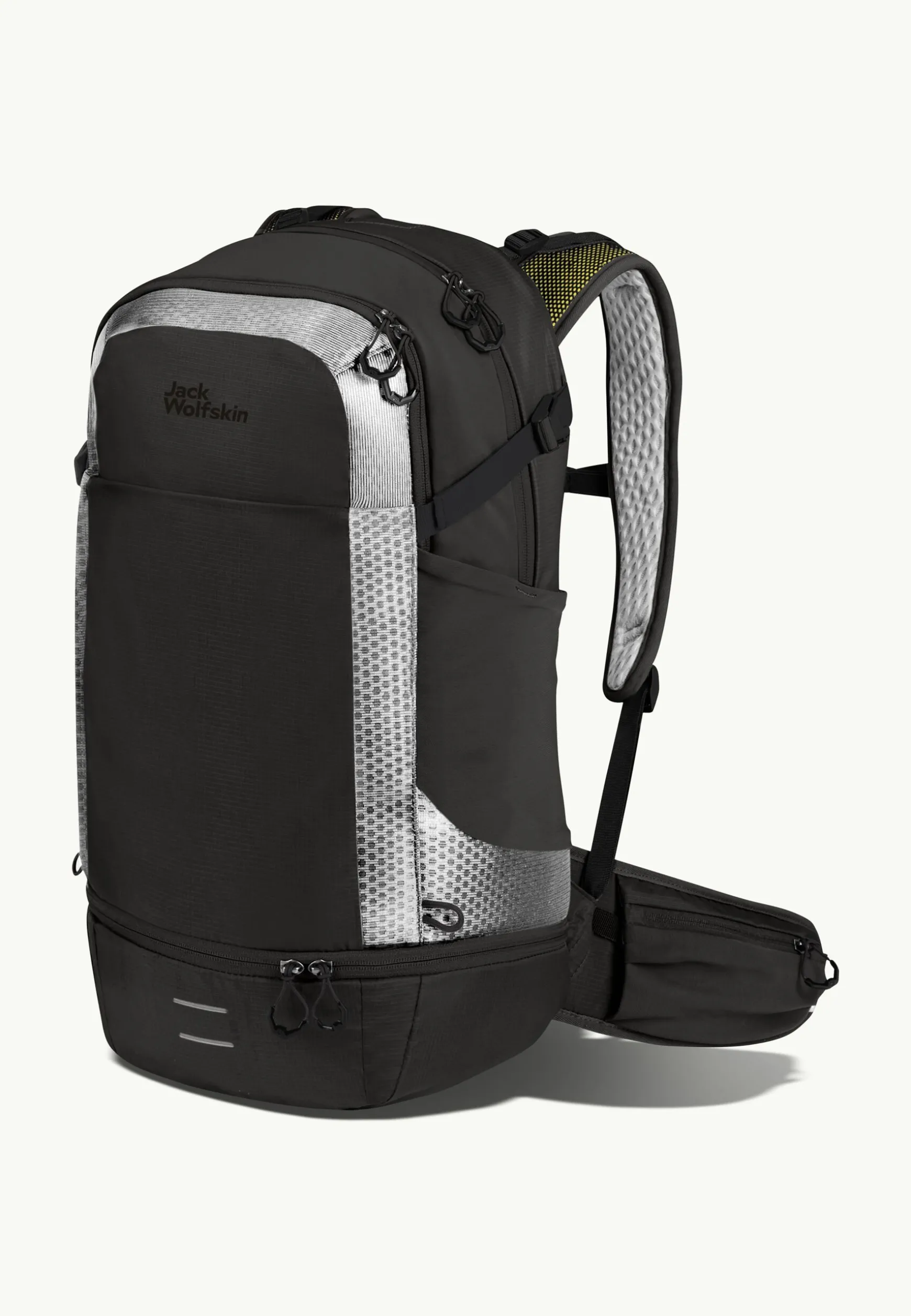 Am gesamten Rucksack und auf den Schultergurten sind umlaufende und reflektierende Materialien mit besonders starker Rückstrahlkraft verbaut.