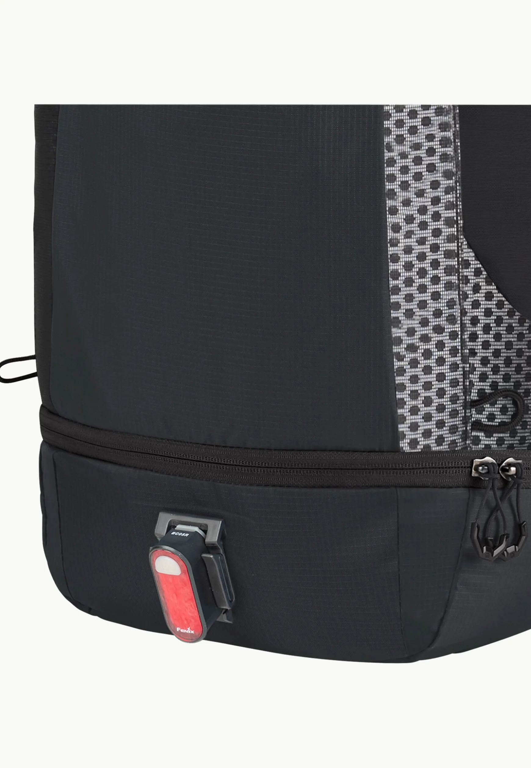 Die Einschubfächer in der Vortasche, nutzt du für Fahrrad-Werkzeug und -Zubehör, es gibt eine Befestigung für LED-Leuchte oder Luftpumpe. Das Hauptfach ist im vorderen Bereich elastisch und lässt sich dadurch ein Stückchen vergrößern.