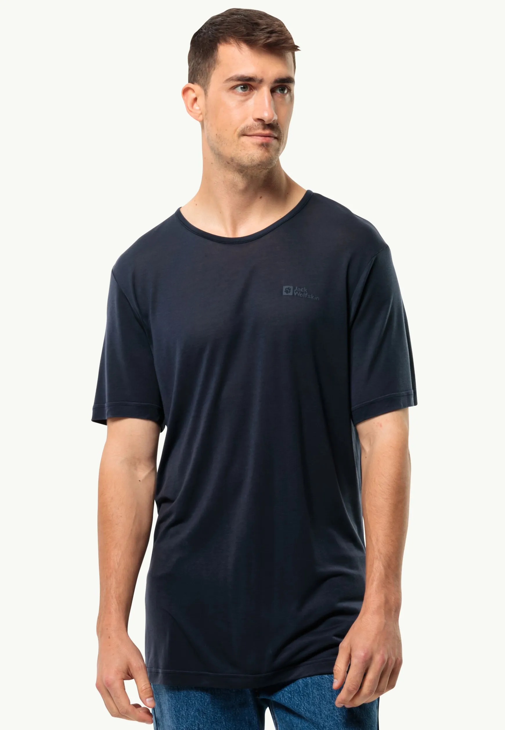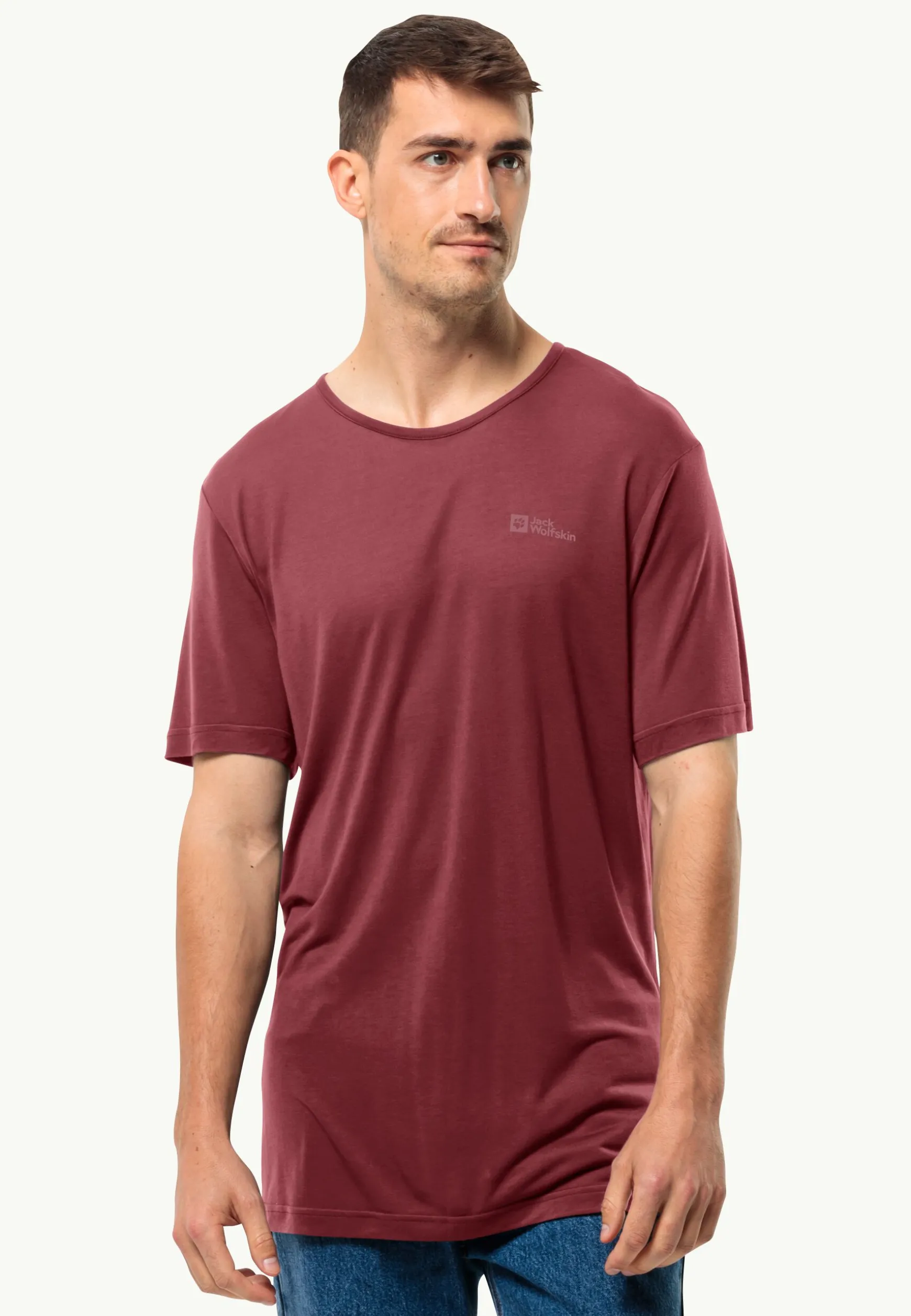 Bring mit dem klassischen MOLA T-SHIRT für Herren frischen Wind in deinen Alltag. Das weiche, natürliche SINGLE JERSEY-Gewebe trägt sich bei Tageswanderungen, beim Kaffeeplausch mit Freunden und auch beim Entspannen zu Hause sehr angenehm. Das Jack Wolfskin-Logo auf der Brust verleiht ihm einen unverwechselbaren Look. Wähle eine Farbe, die deinem Stil entspricht.
