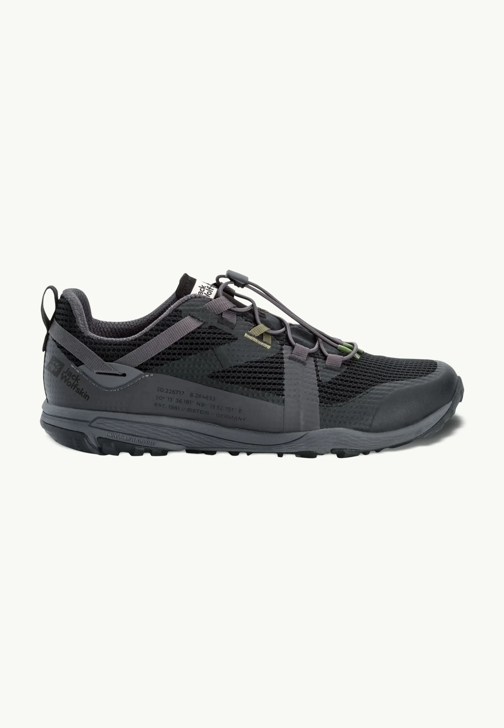 Das CROSS MOTION PAD sorgt für eine festere Sohle und nimmt den Aufprall des Fußes gut auf. Die Gummisohle bietet gute Traktion. Das elastische Schnellschnürsystem rundet das Leichtgewichtkonzept ab.