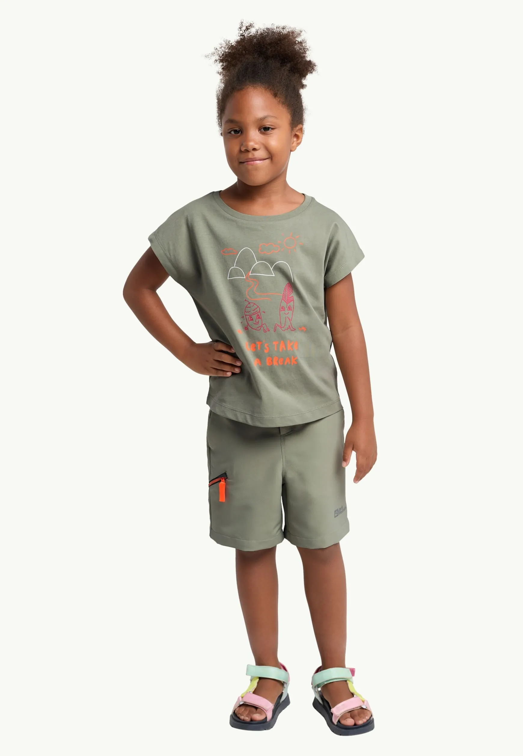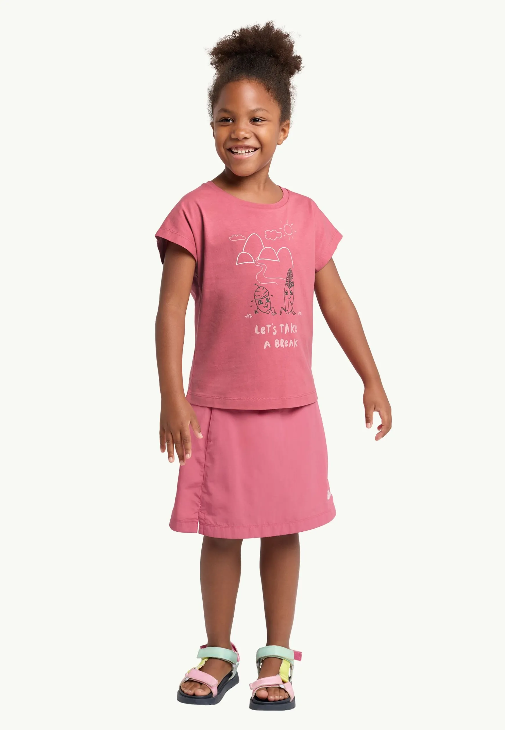 Alle Eltern wissen, wie wichtig es ist, beim Wandern mit Kindern ab und zu eine Pause einzulegen. Dieses Baumwoll-T-Shirt greift die Idee „Take a break“ in einem niedlichen Print auf, das Mädchen lieben werden.